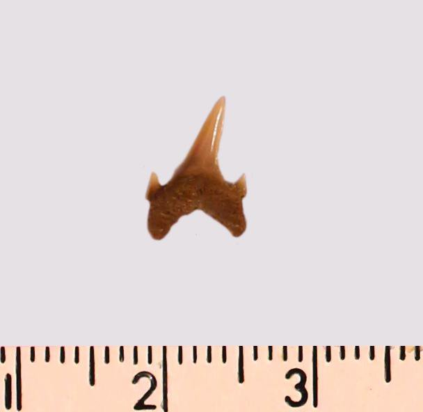 Зуб. Акула. Odontaspis striatula Dalinkevicius, 1935. Классификация: Хордовые Chordata, Позвоночные Vertebrata, Хрящевые рыбы Chondrichthyes, Пластиножаберные Elasmobranchii, Акулы Selachii, Ламнообразные Lamniformes