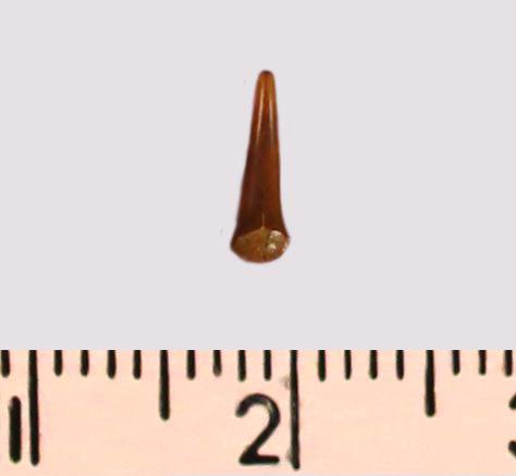 Зуб (фрагмент). Акула. Eostriatolamia subulata (Agassiz, 1843). Классификация: Хордовые Chordata, Позвоночные Vertebrata, Хрящевые рыбы Chondrichthyes, Пластиножаберные Elasmobranchii, Акулы Selachii, Ламнообразные Lamniformes