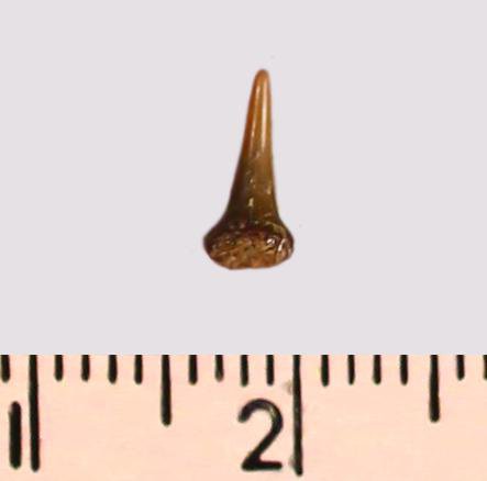Зуб (фрагмент). Акула. Eostriatolamia subulata (Agassiz, 1843). Классификация: Хордовые Chordata, Позвоночные Vertebrata, Хрящевые рыбы Chondrichthyes, Пластиножаберные Elasmobranchii, Акулы Selachii, Ламнообразные Lamniformes