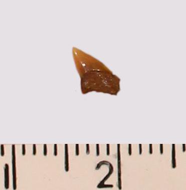 Зуб (фрагмент). Акула. Palaeoanacorax obliquus (Reuss, 1845). Классификация: Хордовые Chordata, Позвоночные Vertebrata, Хрящевые рыбы Chondrichthyes, Пластиножаберные Elasmobranchii, Акулы Selachii, Ламнообразные Lamniformes