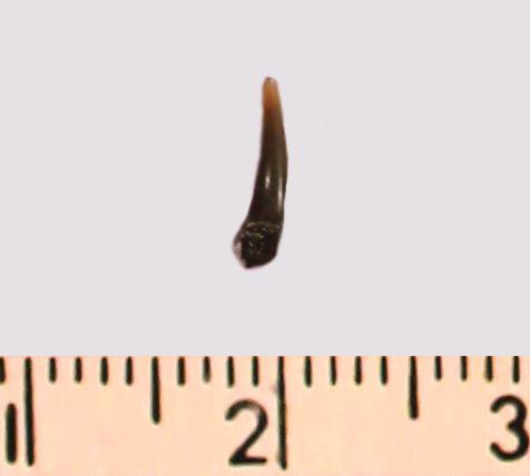 Зуб (фрагмент). Акула. Odontaspis striatula Dalinkevicius, 1935. Классификация: Хордовые Chordata, Позвоночные Vertebrata, Хрящевые рыбы Chondrichthyes, Пластиножаберные Elasmobranchii, Акулы Selachii, Ламнообразные Lamniformes