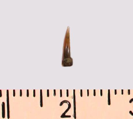 Зуб (фрагмент). Акула. Odontaspis striatula Dalinkevicius, 1935. Классификация: Хордовые Chordata, Позвоночные Vertebrata, Хрящевые рыбы Chondrichthyes, Пластиножаберные Elasmobranchii, Акулы Selachii, Ламнообразные Lamniformes