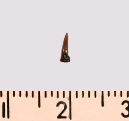 Зуб (фрагмент). Акула. Odontaspis striatula Dalinkevicius, 1935. Классификация: Хордовые Chordata, Позвоночные Vertebrata, Хрящевые рыбы Chondrichthyes, Пластиножаберные Elasmobranchii, Акулы Selachii, Ламнообразные Lamniformes
