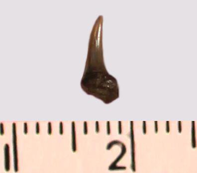 Зуб. Акула. Odontaspis striatula Dalinkevicius, 1935. Классификация: Хордовые Chordata, Позвоночные Vertebrata, Хрящевые рыбы Chondrichthyes, Пластиножаберные Elasmobranchii, Акулы Selachii, Ламнообразные Lamniformes