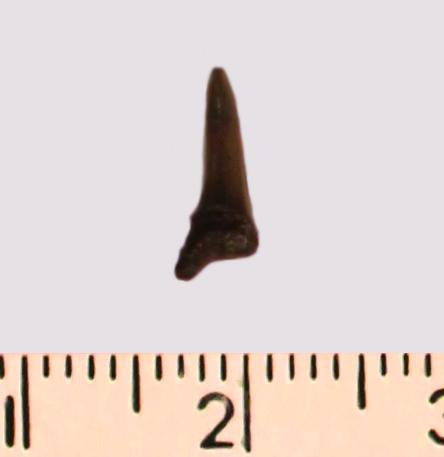 Зуб. Акула. Odontaspis striatula Dalinkevicius, 1935. Классификация: Хордовые Chordata, Позвоночные Vertebrata, Хрящевые рыбы Chondrichthyes, Пластиножаберные Elasmobranchii, Акулы Selachii, Ламнообразные Lamniformes
