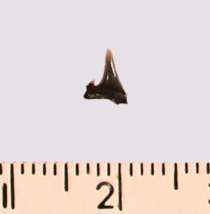 Зуб. Акула. Odontaspis striatula Dalinkevicius, 1935. Классификация: Хордовые Chordata, Позвоночные Vertebrata, Хрящевые рыбы Chondrichthyes, Пластиножаберные Elasmobranchii, Акулы Selachii, Ламнообразные Lamniformes