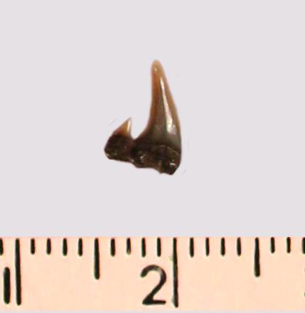 Зуб. Акула. Odontaspis striatula Dalinkevicius, 1935. Классификация: Хордовые Chordata, Позвоночные Vertebrata, Хрящевые рыбы Chondrichthyes, Пластиножаберные Elasmobranchii, Акулы Selachii, Ламнообразные Lamniformes