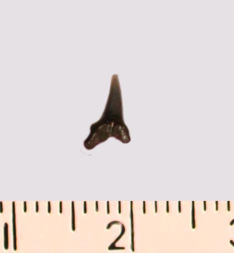 Зуб. Акула. Odontaspis striatula Dalinkevicius, 1935. Классификация: Хордовые Chordata, Позвоночные Vertebrata, Хрящевые рыбы Chondrichthyes, Пластиножаберные Elasmobranchii, Акулы Selachii, Ламнообразные Lamniformes