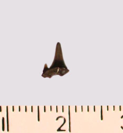 Зуб. Акула. Odontaspis striatula Dalinkevicius, 1935. Классификация: Хордовые Chordata, Позвоночные Vertebrata, Хрящевые рыбы Chondrichthyes, Пластиножаберные Elasmobranchii, Акулы Selachii, Ламнообразные Lamniformes