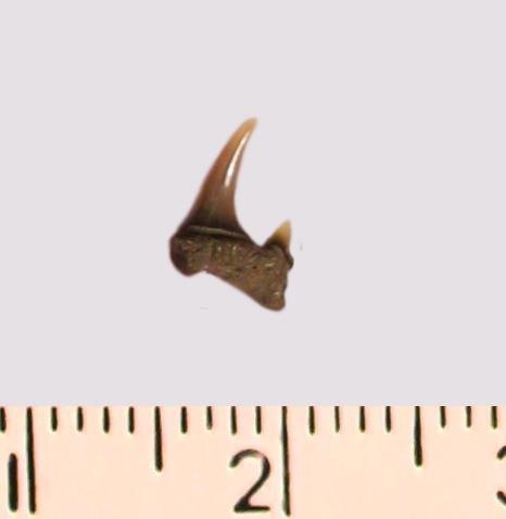 Зуб. Акула. Odontaspis striatula Dalinkevicius, 1935. Классификация: Хордовые Chordata, Позвоночные Vertebrata, Хрящевые рыбы Chondrichthyes, Пластиножаберные Elasmobranchii, Акулы Selachii, Ламнообразные Lamniformes