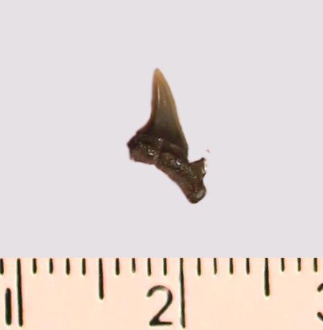 Зуб. Акула. Odontaspis striatula Dalinkevicius, 1935. Классификация: Хордовые Chordata, Позвоночные Vertebrata, Хрящевые рыбы Chondrichthyes, Пластиножаберные Elasmobranchii, Акулы Selachii, Ламнообразные Lamniformes