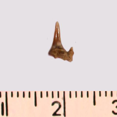 Зуб. Акула. Odontaspis striatula Dalinkevicius, 1935. Классификация: Хордовые Chordata, Позвоночные Vertebrata, Хрящевые рыбы Chondrichthyes, Пластиножаберные Elasmobranchii, Акулы Selachii, Ламнообразные Lamniformes