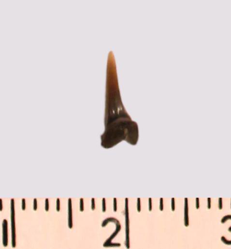 Зуб. Акула. Odontaspis striatula Dalinkevicius, 1935. Классификация: Хордовые Chordata, Позвоночные Vertebrata, Хрящевые рыбы Chondrichthyes, Пластиножаберные Elasmobranchii, Акулы Selachii, Ламнообразные Lamniformes