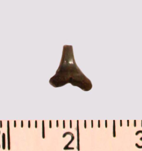 Зуб. Акула. Odontaspis striatula Dalinkevicius, 1935. Классификация: Хордовые Chordata, Позвоночные Vertebrata, Хрящевые рыбы Chondrichthyes, Пластиножаберные Elasmobranchii, Акулы Selachii, Ламнообразные Lamniformes
