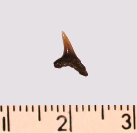 Зуб. Акула. Odontaspis striatula Dalinkevicius, 1935. Классификация: Хордовые Chordata, Позвоночные Vertebrata, Хрящевые рыбы Chondrichthyes, Пластиножаберные Elasmobranchii, Акулы Selachii, Ламнообразные Lamniformes