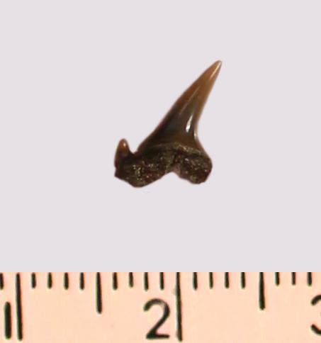 Зуб. Акула. Odontaspis striatula Dalinkevicius, 1935. Классификация: Хордовые Chordata, Позвоночные Vertebrata, Хрящевые рыбы Chondrichthyes, Пластиножаберные Elasmobranchii, Акулы Selachii, Ламнообразные Lamniformes