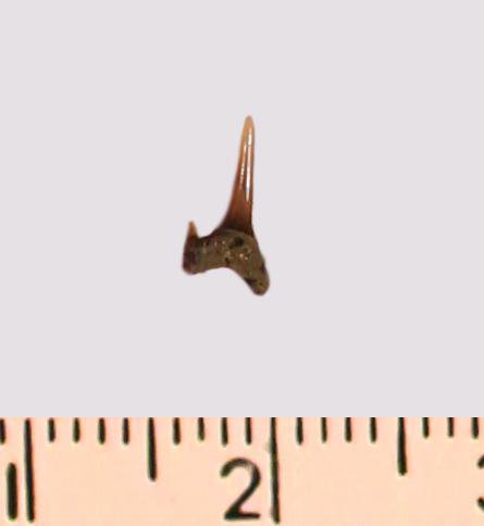 Зуб. Акула. Odontaspis striatula Dalinkevicius, 1935. Классификация: Хордовые Chordata, Позвоночные Vertebrata, Хрящевые рыбы Chondrichthyes, Пластиножаберные Elasmobranchii, Акулы Selachii, Ламнообразные Lamniformes