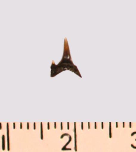 Зуб. Акула. Odontaspis striatula Dalinkevicius, 1935. Классификация: Хордовые Chordata, Позвоночные Vertebrata, Хрящевые рыбы Chondrichthyes, Пластиножаберные Elasmobranchii, Акулы Selachii, Ламнообразные Lamniformes