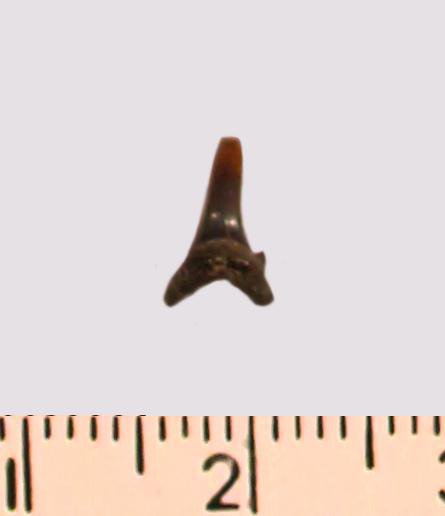 Зуб. Акула. Odontaspis striatula Dalinkevicius, 1935. Классификация: Хордовые Chordata, Позвоночные Vertebrata, Хрящевые рыбы Chondrichthyes, Пластиножаберные Elasmobranchii, Акулы Selachii, Ламнообразные Lamniformes
