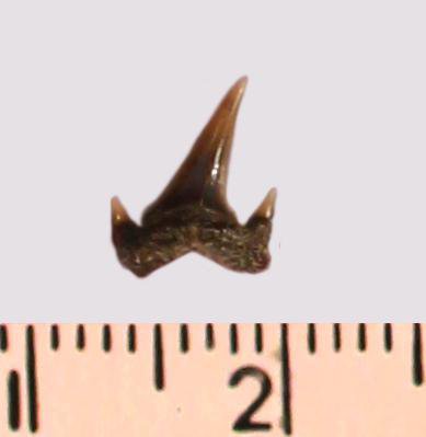 Зуб. Акула. Odontaspis striatula Dalinkevicius, 1935. Классификация: Хордовые Chordata, Позвоночные Vertebrata, Хрящевые рыбы Chondrichthyes, Пластиножаберные Elasmobranchii, Акулы Selachii, Ламнообразные Lamniformes