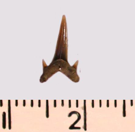 Зуб. Акула. Odontaspis striatula Dalinkevicius, 1935. Классификация: Хордовые Chordata, Позвоночные Vertebrata, Хрящевые рыбы Chondrichthyes, Пластиножаберные Elasmobranchii, Акулы Selachii, Ламнообразные Lamniformes