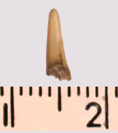 Зуб (фрагмент). Акула. Odontaspis subulata (Agassiz, 1843). Классификация: Хордовые Chordata, Позвоночные Vertebrata, Хрящевые рыбы Chondrichthyes, Пластиножаберные Elasmobranchii, Акулы Selachii, Ламнообразные Lamniformes