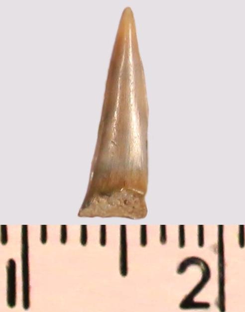 Зуб (фрагмент). Акула. Odontaspis subulata (Agassiz, 1843). Классификация: Хордовые Chordata, Позвоночные Vertebrata, Хрящевые рыбы Chondrichthyes, Пластиножаберные Elasmobranchii, Акулы Selachii, Ламнообразные Lamniformes