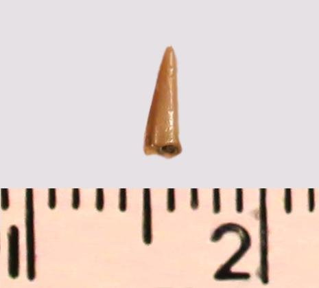 Зуб (фрагмент). Акула. Odontaspis subulata (Agassiz, 1843). Классификация: Хордовые Chordata, Позвоночные Vertebrata, Хрящевые рыбы Chondrichthyes, Пластиножаберные Elasmobranchii, Акулы Selachii, Ламнообразные Lamniformes