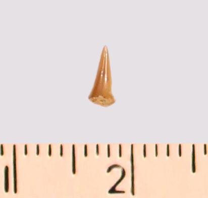 Зуб (фрагмент). Акула. Odontaspis subulata (Agassiz, 1843). Классификация: Хордовые Chordata, Позвоночные Vertebrata, Хрящевые рыбы Chondrichthyes, Пластиножаберные Elasmobranchii, Акулы Selachii, Ламнообразные Lamniformes