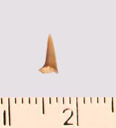 Зуб (фрагмент). Акула. Odontaspis subulata (Agassiz, 1843). Классификация: Хордовые Chordata, Позвоночные Vertebrata, Хрящевые рыбы Chondrichthyes, Пластиножаберные Elasmobranchii, Акулы Selachii, Ламнообразные Lamniformes