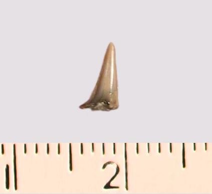 Зуб (фрагмент). Акула. Odontaspis subulata (Agassiz, 1843). Классификация: Хордовые Chordata, Позвоночные Vertebrata, Хрящевые рыбы Chondrichthyes, Пластиножаберные Elasmobranchii, Акулы Selachii, Ламнообразные Lamniformes