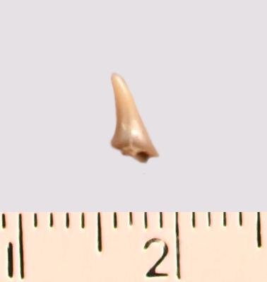 Зуб (фрагмент). Акула. Odontaspis subulata (Agassiz, 1843). Классификация: Хордовые Chordata, Позвоночные Vertebrata, Хрящевые рыбы Chondrichthyes, Пластиножаберные Elasmobranchii, Акулы Selachii, Ламнообразные Lamniformes