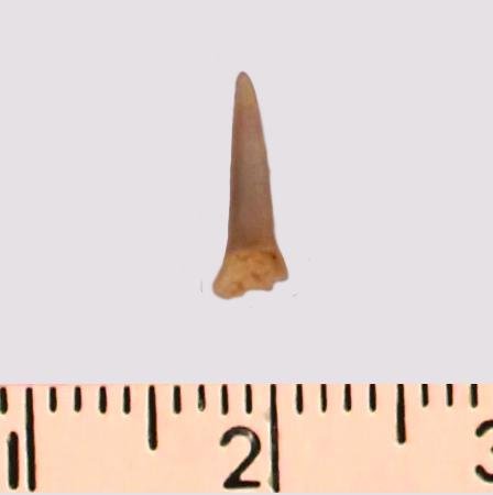 Зуб (фрагмент). Акула. Odontaspis subulata (Agassiz, 1843). Классификация: Хордовые Chordata, Позвоночные Vertebrata, Хрящевые рыбы Chondrichthyes, Пластиножаберные Elasmobranchii, Акулы Selachii, Ламнообразные Lamniformes
