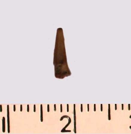 Зуб (фрагмент). Акула. Odontaspis subulata (Agassiz, 1843). Классификация: Хордовые Chordata, Позвоночные Vertebrata, Хрящевые рыбы Chondrichthyes, Пластиножаберные Elasmobranchii, Акулы Selachii, Ламнообразные Lamniformes