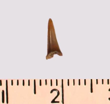 Зуб (фрагмент). Акула. Odontaspis subulata (Agassiz, 1843). Классификация: Хордовые Chordata, Позвоночные Vertebrata, Хрящевые рыбы Chondrichthyes, Пластиножаберные Elasmobranchii, Акулы Selachii, Ламнообразные Lamniformes