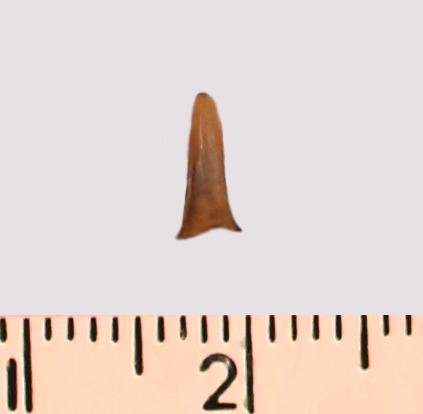 Зуб (фрагмент). Акула. Odontaspis subulata (Agassiz, 1843). Классификация: Хордовые Chordata, Позвоночные Vertebrata, Хрящевые рыбы Chondrichthyes, Пластиножаберные Elasmobranchii, Акулы Selachii, Ламнообразные Lamniformes