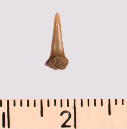 Зуб (фрагмент). Акула. Odontaspis subulata (Agassiz, 1843). Классификация: Хордовые Chordata, Позвоночные Vertebrata, Хрящевые рыбы Chondrichthyes, Пластиножаберные Elasmobranchii, Акулы Selachii, Ламнообразные Lamniformes
