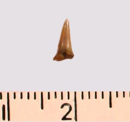 Зуб (фрагмент). Акула. Odontaspis subulata (Agassiz, 1843). Классификация: Хордовые Chordata, Позвоночные Vertebrata, Хрящевые рыбы Chondrichthyes, Пластиножаберные Elasmobranchii, Акулы Selachii, Ламнообразные Lamniformes
