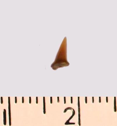 Зуб (фрагмент). Акула. Odontaspis subulata (Agassiz, 1843). Классификация: Хордовые Chordata, Позвоночные Vertebrata, Хрящевые рыбы Chondrichthyes, Пластиножаберные Elasmobranchii, Акулы Selachii, Ламнообразные Lamniformes