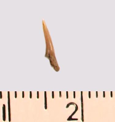 Зуб (фрагмент). Акула. Odontaspis subulata (Agassiz, 1843). Классификация: Хордовые Chordata, Позвоночные Vertebrata, Хрящевые рыбы Chondrichthyes, Пластиножаберные Elasmobranchii, Акулы Selachii, Ламнообразные Lamniformes