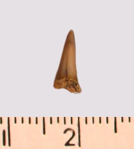 Зуб (фрагмент). Акула. Odontaspis macrorhiza (Cope) Leriche, 1902. Классификация: Хордовые Chordata, Позвоночные Vertebrata, Хрящевые рыбы Chondrichthyes, Пластиножаберные Elasmobranchii, Акулы Selachii, Ламнообразные Lamniformes
