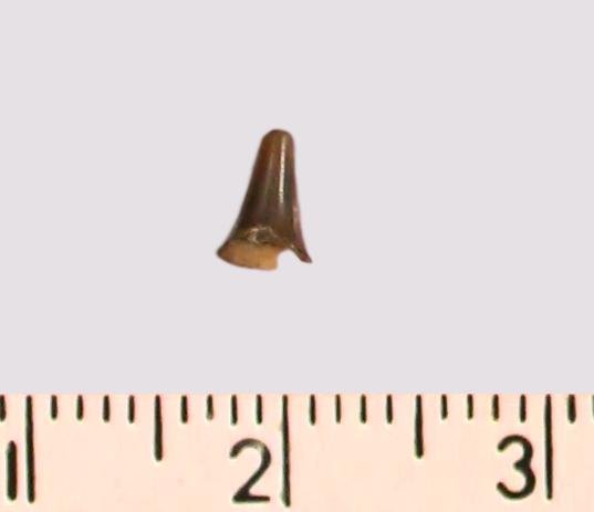 Зуб (фрагмент). Акула. Lamniformes gen. et sp. indet. Классификация: Хордовые Chordata, Позвоночные Vertebrata, Хрящевые рыбы Chondrichthyes, Пластиножаберные Elasmobranchii, Акулы Selachii, Ламнообразные Lamniformes