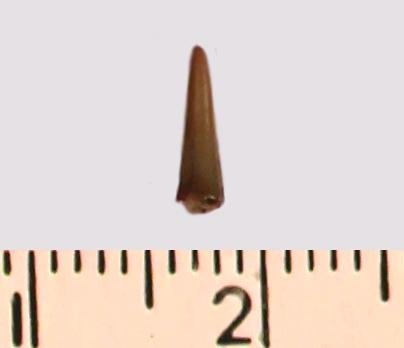 Зуб (фрагмент). Акула. Odontaspis subulata (Agassiz, 1843). Классификация: Хордовые Chordata, Позвоночные Vertebrata, Хрящевые рыбы Chondrichthyes, Пластиножаберные Elasmobranchii, Акулы Selachii, Ламнообразные Lamniformes