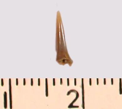 Зуб (фрагмент). Акула. Odontaspis subulata (Agassiz, 1843). Классификация: Хордовые Chordata, Позвоночные Vertebrata, Хрящевые рыбы Chondrichthyes, Пластиножаберные Elasmobranchii, Акулы Selachii, Ламнообразные Lamniformes