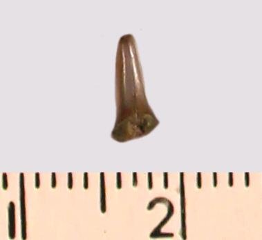 Зуб (фрагмент). Акула. Odontaspis subulata (Agassiz, 1843). Классификация: Хордовые Chordata, Позвоночные Vertebrata, Хрящевые рыбы Chondrichthyes, Пластиножаберные Elasmobranchii, Акулы Selachii, Ламнообразные Lamniformes