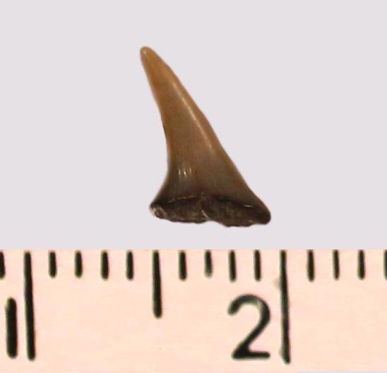 Зуб (фрагмент). Акула. Odontaspis subulata (Agassiz, 1843). Классификация: Хордовые Chordata, Позвоночные Vertebrata, Хрящевые рыбы Chondrichthyes, Пластиножаберные Elasmobranchii, Акулы Selachii, Ламнообразные Lamniformes