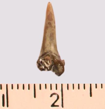 Зуб (фрагмент). Акула. Odontaspis macrorhiza (Cope) Leriche, 1902. Классификация: Хордовые Chordata, Позвоночные Vertebrata, Хрящевые рыбы Chondrichthyes, Пластиножаберные Elasmobranchii, Акулы Selachii, Ламнообразные Lamniformes