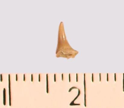 Зуб (фрагмент). Акула. Synechodus sp. Классификация: Хордовые Chordata, Позвоночные Vertebrata, Хрящевые рыбы Chondrichthyes, Пластиножаберные Elasmobranchii, Акулы Selachii, Синеходонтообразные Synechodontiformes