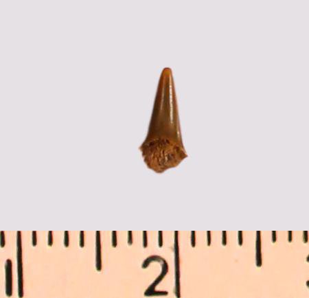 Зуб (фрагмент). Акула. Odontaspis macrorhiza (Cope) Leriche, 1902. Классификация: Хордовые Chordata, Позвоночные Vertebrata, Хрящевые рыбы Chondrichthyes, Пластиножаберные Elasmobranchii
