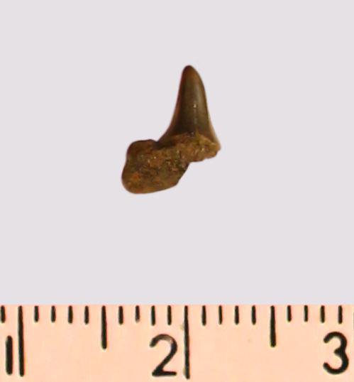 Зуб. Акула. Odontaspis macrorhiza (Cope) Leriche, 1902. Классификация: Хордовые Chordata, Позвоночные Vertebrata, Хрящевые рыбы Chondrichthyes, Пластиножаберные Elasmobranchii